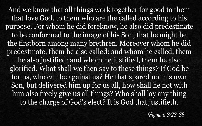 I believe that God loved, predetermined, and chose His people to be conformed to the image of His beloved Son Jesus Christ before the foundation of the world; These chosen elect of God were called with a Holy calling, justified, redeemed, reconciled back to the Father by the precious blood of His only begotten son, Jesus Christ.